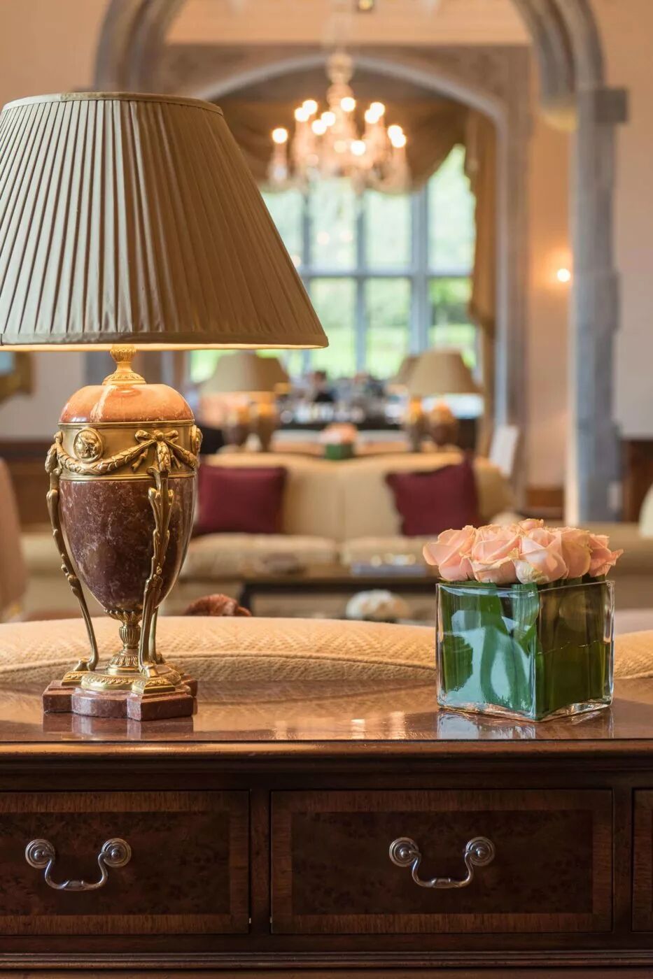 酒店外观的气势恢宏自然是令人叹为观止,青灰色古老的外墙记录着城堡的雄伟与高贵,酒店内部装饰则再现了浓郁爱尔兰典雅风韵,古朴的橡木墙壁见证爱尔兰昔日的灿烂辉煌,精致的木雕栏杆讲述着今日爱尔兰的大气优雅。