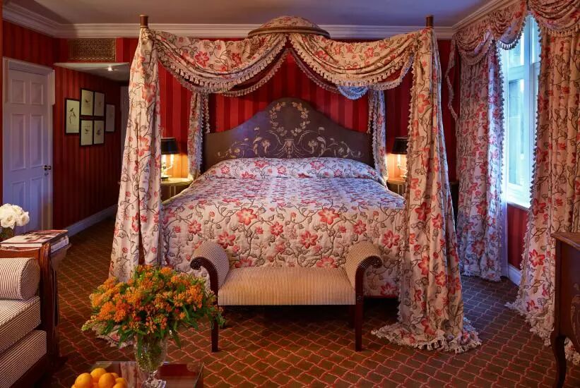 这座气恢宏的城堡中共有 83 间客房及套房。几乎所有的房间软装都极尽古典华美,但每一间都不一样。设计灵感来自维多利亚晚期和哥特复兴时期的欧洲城堡,装饰着亮丽帷幔的四柱床,临窗而设的慵懒贵妃椅……一切都仿佛旧时贵族生活的完美复现。