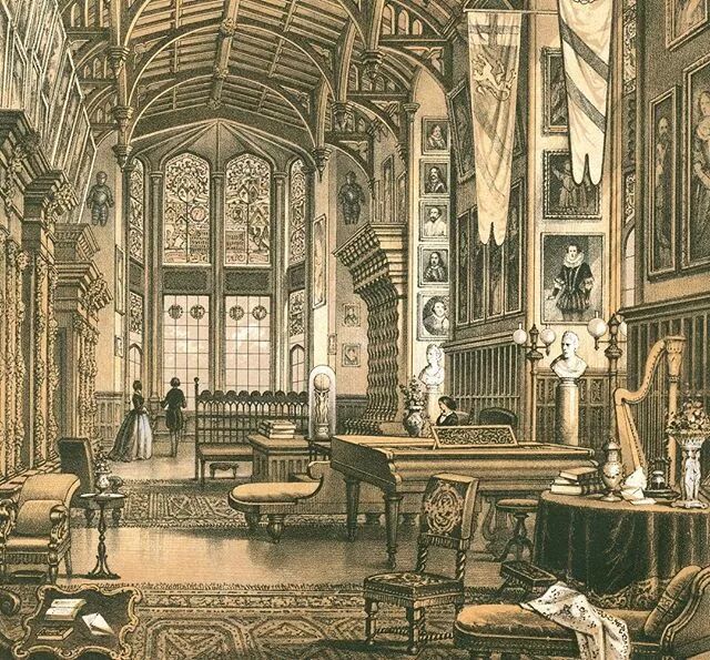 到了1832年,Dunraven 伯爵二世的痛风严重影响生活。他的夫人鼓励他亲自将这栋庄园设计翻修成欧洲宏大教堂和城堡的式样。希望这样复杂庞大的工作能转移他对痛风疼痛的关注。于是漫长的翻修开始了。