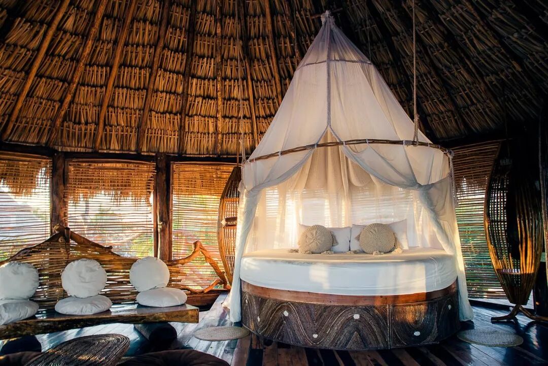 Azulik共有48间别墅,根据周围环境的不同区分成不同的房型。以水,天空,丛林,和月亮作为灵感,打造出融入不同元素的特色别墅。即使整体的结构是由最为传统的木头和稻草手工搭建,却丝毫不妨碍内部空间的别致。