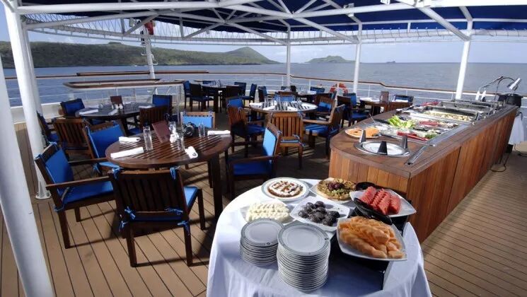 La Pinta还拥有一个室内健身房,医生办公室,精品店,洗衣房,热水浴缸,室外天空酒吧,免费的互联网和WiFi。全景窗和露天甲板让你可以一边尽情饱览加拉帕戈斯群岛的无敌美景,一边放松,享受阳光。