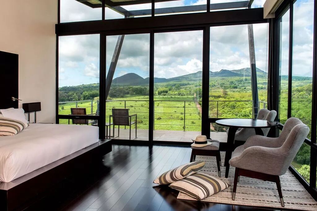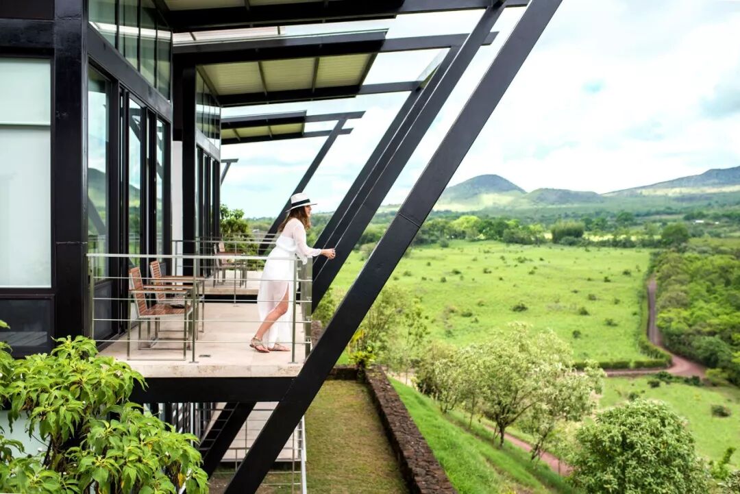 客房及别墅屹立在火山高原的山坡上,位于稀树草原和云雾萦绕的热带丛林之间,坐拥群山、森林、火山和海洋交织的壮丽景色。