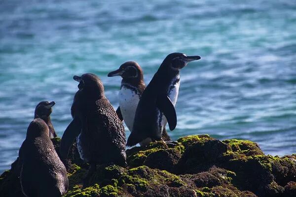 别看这些企鹅体型小,来头可是不小。受到秘鲁寒流的影响,位于赤道附近的加拉帕戈斯群岛的气温远低于同纬度其他地区,于是原本属于极地的企鹅就在这里按家了。现存共千余只的加拉帕戈斯企鹅,是世界上唯一生活在赤道附近的企鹅,也是唯一能在北半球找到踪迹的企鹅种类。事实上,这里也偶有高温的日子,观察企鹅如何避暑也非常有意思。