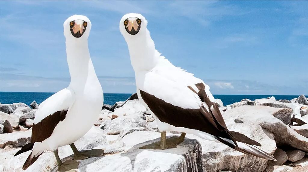 北西摩岛,这里是海狮的繁殖栖息地,也是多种海鸟主要栖息地。在岛上繁殖的多种海鸟之中,蓝脚鲣鸟知名度最高,除此之外,该岛也拥有全世界最大的丽色军舰鸟族群。这里还可以看到天然呆萌的蓝脚鲣鸟跳着被称为“sky-pointing”的特色求偶舞蹈、海鬣蜥和加拉帕戈斯陆鬣蜥在海滩上悠闲地晒着太阳。