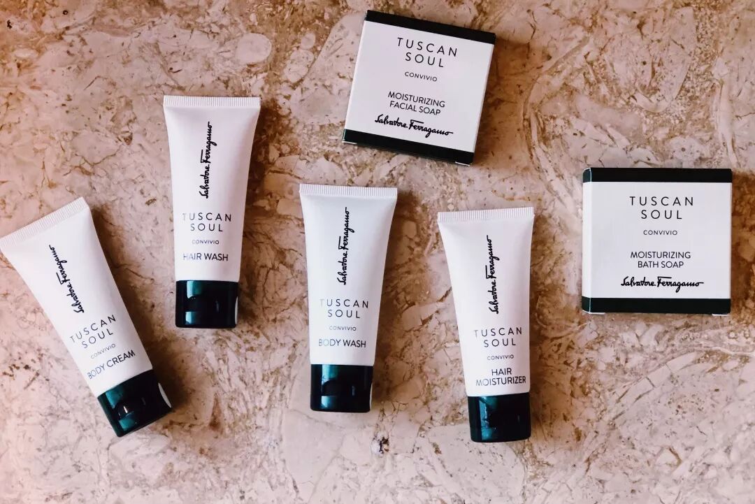 干湿分离的浴室间,配有双人洗手台,TOTO自动马桶,全套Salvatore Ferregamo滋润系列备品想必备受住客宠爱。