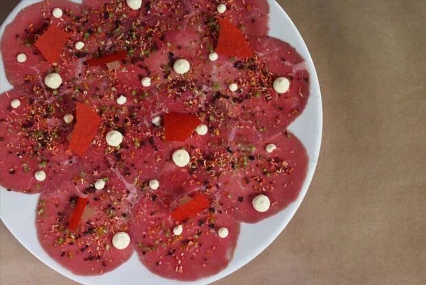 这家店的招牌就是意式生牛肉片(Carpaccio),Osso 餐厅将屠宰和烹饪结合一体,这里有独立的屠宰贩卖窗口,餐厅的食材也全部来自自己的屠宰窗口,从而使得食材得到最为鲜美的风味。