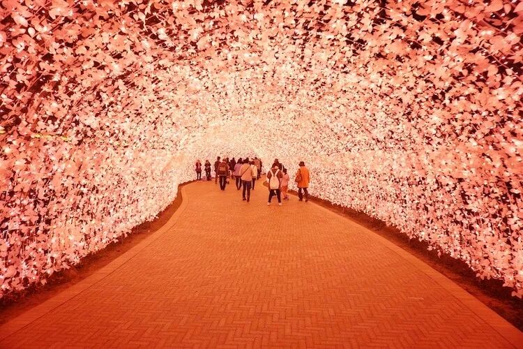 日本三重县桑名市名花之里(Nabana noSato),每年冬天都会举行盛大的彩灯会,这里也是全日本最佳彩灯会之一,美得可以用“壮烈”来形容,走在其中,或许会误以为走在冥河?