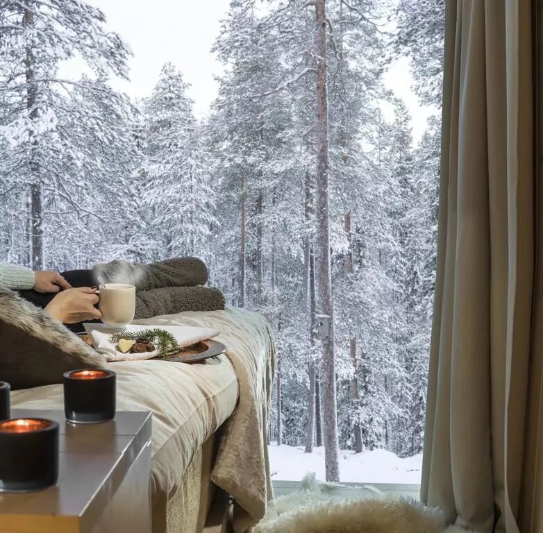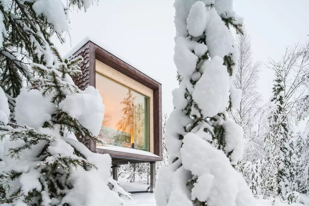 Arctic TreeHouse Hotel是目前芬兰最火的方形玻璃屋酒店,许多IG的网红都曾到过这里。酒店位于芬兰的罗瓦涅米(Rovaniemi),坐落在SantaPark公园内。单面整体玻璃幕墙是树屋的最大亮点,从玻璃墙中望出去,就是大片大片的白雪森林,分分钟美到窒息。