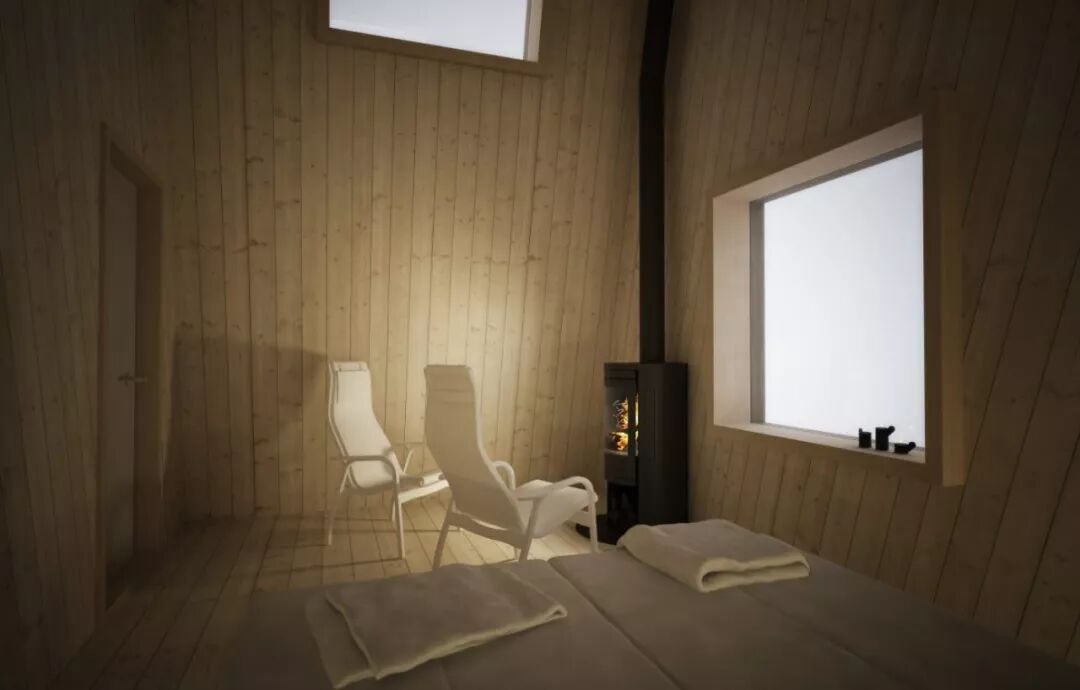 仅有6间客房,一律采用北欧的简约设计。每个房间里都配备了燃木壁炉以及大落地窗,充分保证了温暖性与绝佳视野。在客房内同时亦设有朝向天空的大窗户,就算躺在床上也能看北极光~