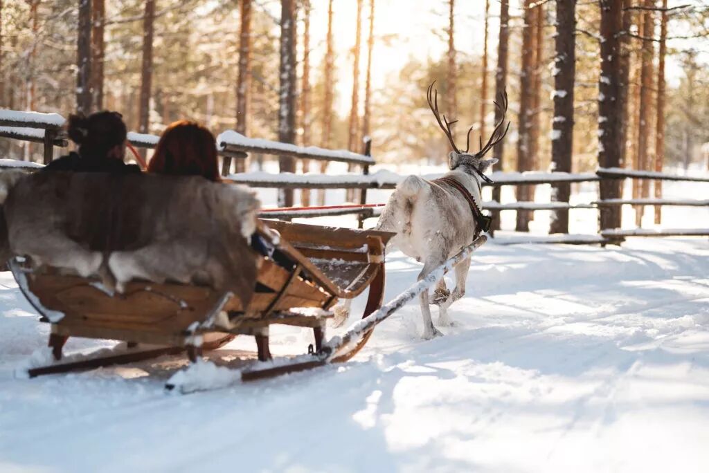 悠闲舒适地坐在驯鹿雪橇上,穿梭在白雪皑皑的森林之中,可以满怀期待,因为谁也不会知道是否会有北极光出现在头顶碧绿的天空,之后可以围着篝火,享受一杯暖暖的咖啡和一些美味的面包,惬意地感受驯鹿农场寂静美好的夜晚。