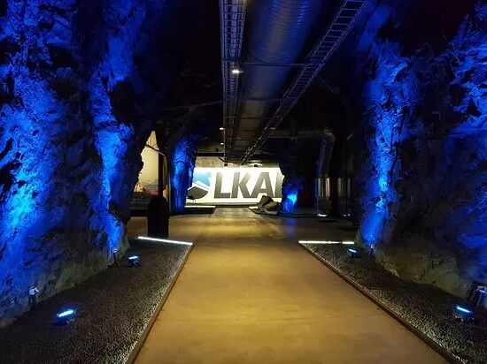 参观基律纳LKAB铁矿(2.5H),登上LKAB铁矿之旅的大巴从冒着热气的山口进入,车子在黑暗的隧道中一路下坡呼啸行驶,很有动画片里探险的感觉。