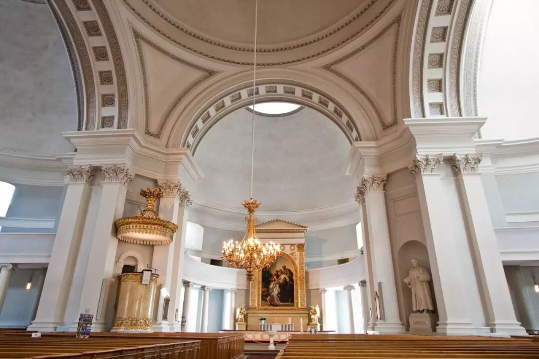 位于议会广场,是一座路德派教堂。乳白色的大教堂建于1852年,其结构之精美,堪称芬兰建筑艺术的精华。大教堂顶端是带淡绿色圆拱的钟楼,高出海平面80多米,在大海上一眼就能看见,无论身处市区的哪个角落,也都能望到它的身影。