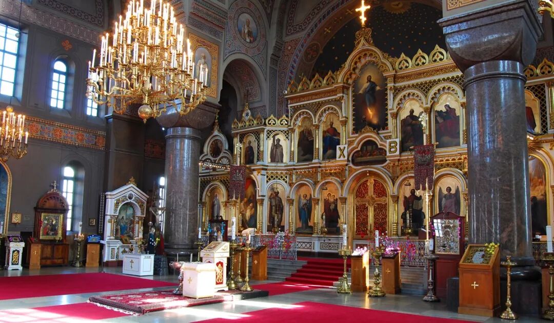 教堂内部的穹顶描绘着华丽的饰画与宗教典故雕饰,具有浓郁的传统东正教堂艺术风格,非常值得参观!