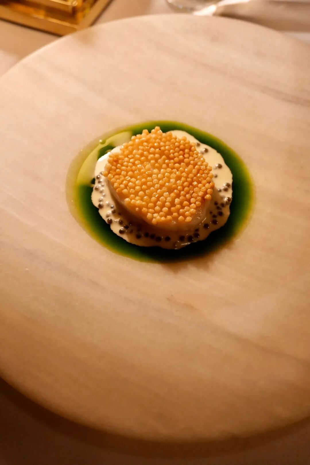 春季新菜:鲟龙鱼子酱,中式瑶柱豆花