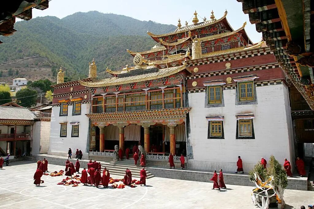 接下来的一站是东竹林寺。这座古寺建于公元1667年(清康熙六年),原名“冲冲措岗寺”,意为仙鹤湖畔之寺。坐落在德钦县奔子栏乡书松村南永干顶突出山崖之上,寺院建筑群,风景险峻,人文可观。寺中珍藏有不计其数的珍珠宝石、佛像法器,成为迪庆州第二大寺庙,德钦县第一大寺。由于正值淡季,寺院内十分清静,坐在寺庙里,晒晒太阳,安静的只能听到风声。