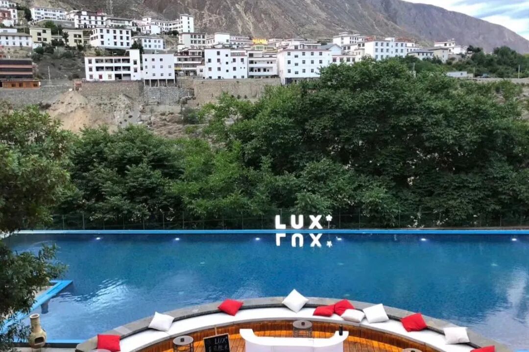 奔子栏,这个位于金沙江畔的村镇,自古是茶马古道上的商业重镇,也是“茶马古道”的必经之路。这里距离香格里拉机场大约2小时的行车时间,处于香格里拉与梅里之间,海拔2000米左右,正好给身体一个适应高原环境的缓冲机会。这里是典型的干热河谷气候,气温比香格里拉高些,体感相对舒服,是非常好的休息中转站。近年来也吸引了一些酒店在此落户,其中包括松赞奔子栏山居和丽世酒店。此次入住的是奔子栏丽世酒店。Lux*这个品牌源自毛里求斯。品牌一直专注于海岛奢华度假村,不过它在中国开设的2家酒店,走的是茶马古道主题。听说不久在云南可以见到更多丽世的身影,非常期待。当晚便品尝到了地道的牦牛火锅,大快朵颐的同时,配着当地自制的黑啤精酿,真是好舒服的一顿饭。晚上,在泳池畔当一回沙发土豆,欣赏一场露天电影,漫天星辰之下凉风习习,吹散了旅途劳顿,我的滇藏之旅就这样完美开启了。从奔子栏出发前往梅里,需要翻过海拔4千多米的白马雪山。途经金沙江大拐弯,可以观赏到金沙江U字型掉头的壮观景象,沿途还会拜访东竹林寺。金沙江大拐弯,是金沙江与一座浑圆的山峰相逢后,江水绕着山峰顺势掉头奔流,形成了一个标准的“倒Ω”形,不少震撼人心的中外摄影作品中就有它的身影。我们在观景平台停留时,也无法抗拒地举起相机,不停地记录下它壮美的样子 。
