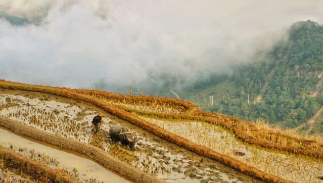 层层叠叠的梯田,这样得天独厚的景色像一幅幅巨大的油画连在一起,非常震撼。