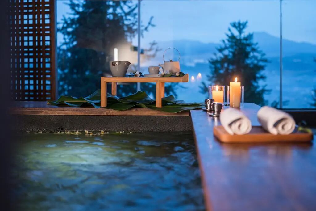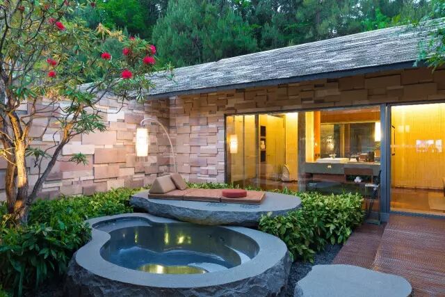 酒店有50栋独立的花园别墅,每一栋都拥有花草茂盛的庭院,静享云峰山原始森林美景。酒店所在地以天然优质的火山碳酸温泉闻名于世,同时也是著名的道教圣地。
