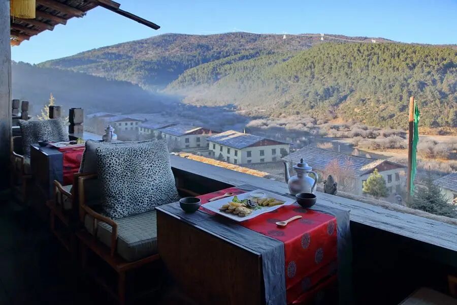 这间悦榕庄选址于香格里拉隐秘的仁安山谷中,毗邻藏传佛教寺庙大宝寺,由藏民房屋重新改造而成。这32栋藏式民居,自此成为传奇存在,是中国至今唯一入选世界国家地理的全球精选酒店。入住仁安悦榕庄,像是来到了英国作家詹姆斯希尔顿小说《消失的地平线》中,用瑰丽的文字向世人描绘的一个充满诗意和梦幻,飘荡着田野牧歌的理想国度。酒店拥有三间仁安小屋, 六间藏式Spa牧舍, 八间藏式小屋和十五间藏式牧舍。客房内部装饰精美,各式当代藏族艺术工艺品琳琅满目,色彩艳丽的精美编织毯与窗帘交相呼应。每间客房内均有设计华丽的浴室,更有纯手工打造的木制浴缸。这里的藏式火锅堪称一绝,以藏地香料和云南特有的野生菌菇熬制而成,再涮入牦牛肉,口感鲜美无比,一定不要错过!