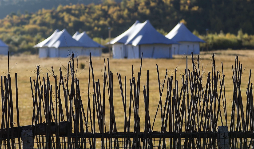 推开营地黄色的木质大门,几顶白色的帐篷在这苍茫草地中显得分外醒目。