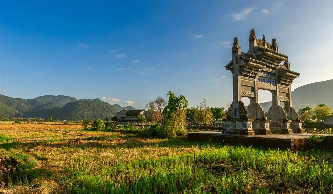 在和顺,除了雕刻造型栩栩如生的建筑,还有一派如诗如画的自然风光:山清水秀,垂柳拂案,绿影婆娑。双虹桥、荷塘向东而去,有大片大片的农田,稻田时见白鹭,远处环峙一山又一山。秋日里,一副乡村田园金色画卷,与湛蓝的天空交汇映衬。这样的景色,看很久都不会觉得累,反而让心境自然平和下来,所有感官都围绕着周遭的自然景色而动。