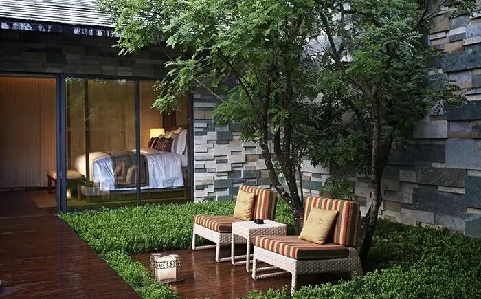 酒店有50栋独立的花园别墅,每一栋都拥有花草茂盛的庭院,静享云峰山原始森林美景。酒店所在地以天然优质的火山碳酸温泉闻名于世,同时也是著名的道教圣地。入住石头纪的日子,如果不想外出门,就在酒店品茗赏景,也是一种乐趣。 2019年1月开业的宁海安岚,可以说是藏匿在山林里的世外桃源。它与安缦师出同门,属于吉合睦(GHM)旗下的成熟高端品牌。