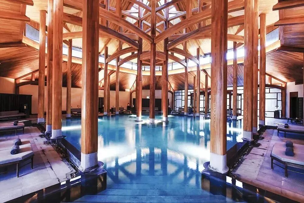 作为一座山城,重庆有很多与众不同的亮点,压箱底的温泉也是其中之一。由香港知名建筑师严迅奇所设计,整体以中式风格为主的重庆北碚悦榕庄,就坐落于国家级自然保护区缙云山脚下的北碚区十里温泉城。酒店也是悦榕集团首家品牌温泉度假村。酒店被环绕在一派苍翠的绿意之中,宛如天然氧吧。蓝天下的悦榕庄院落,典雅又充满古意,配以温泉水疗及一流的便利设施,给人一种奢华现代的山居曼妙体验。酒店的设计重点突出了川渝地区的审美观念,所见之处都将重庆当地文化特色无声又自然地嵌入其中。随处可见牡丹、莲花图案,前者象征着高贵、财富和好运,而后者寓意幸福。北碚悦榕庄共有96间套房及别墅,包括温泉汤屋、温泉汤院、双池/双卧双池温泉汤院、总统别墅等多种房型可选择。所有套房都有私人温泉泡池,部分别墅还额外配有私人泳池。在套房和别墅泡汤时,都能欣赏到波澜壮阔的苍山玉水景色。客房内饰采用红色为点缀,与棕色和米色的中性基调形成强烈对比,用具有视觉冲击性的现代手法演绎出了中国式的传统典雅。一场舒缓的温泉泡浴配上酒店SPA,简直是再好不过的身心放松体验了。酒店中38℃的温泉水富含硫酸钙、镁、钾等多种矿物质,在温泉水中泡上15分钟,给身体充分的时间,吸收温泉水中的矿物质以及按摩精油中的滋养成分。酒店周围更是风景如画,有丰富的自然和人文景观,全年平均气温20摄氏度,非常适合度假。云南的腾冲有原始森林,有古镇,还有着丰富的地热资源。作为国内唯一的火山地热并存地区,当地的温泉无论种类还是数量都算得上全国罕见。和顺柏联酒店就位于四面火山环抱,湿地、小河围绕的腾冲和顺古镇。酒店占地面积180亩,设计出自安缦与四季御用设计师John Heah。比起重庆柏联融入江林山野的建筑奇迹,这里的亮点放在了内里:新中式风的清新感被诠释得有声有色。天空、水岸、田园、湿地、植被和山体与东方生活美学被完美融合在了一起。酒店呈蝶状分布的柚木建筑群隐匿于一片广阔的田园间,周边是美得令人心醉的火山田园风光。酒店后面的山坡上名木古树生长地郁郁葱葱,让这里显得更加自然避世。目前酒店已开放50亩露天园林温泉及豪华汤屋和别墅35间,都有独立的温泉泡池。晚上工作人员会帮你点燃蜡烛,放好温泉水,撒上花瓣。在这一片静谧中泡着汤赏星空,不得不说这才是度假的正确打开方式。酒店客房内的床品与迪拜帆船酒店同款;备品来自英国Aromatherapy Associates;Spa用品来自植物种子提炼的德国阿玛拉。客房中目之所及的小物件皆为定制,品质可见一斑。在柏联酒店的露天园林温泉悠闲地泡个温泉,再到柏联茶园歇脚品茶,在这里享受一段中国式的雅致生活,淡泊、平和,还带一点点怀旧。同样位于腾冲的石头纪温泉度假酒店,被誉为“长在石头里的酒店”。除了享有腾冲丰富的地热资源,还被不少人视为当地最美酒店。从2019年7月1日开始,石头纪温泉度假酒店正式加入凯悦臻选品牌,成为中国第二家凯悦臻选品牌酒店。酒店位于腾冲滇滩云峰村云峰山原始森林公园脚下,在主峰望东的半围合谷地“不老谷”铺陈开来,风水绝好。日本设计师隈研吾在这片绝境般的乡野之地,用他著名的负建筑理论,设计打造了这片宛若从土地上生长出来的建筑群。酒店的建筑外观由多种不同的当地石材拼贴而成,延续了隈研吾尊重场地,尊重历史,借鉴当地文化或特色自然形态的建筑风格。