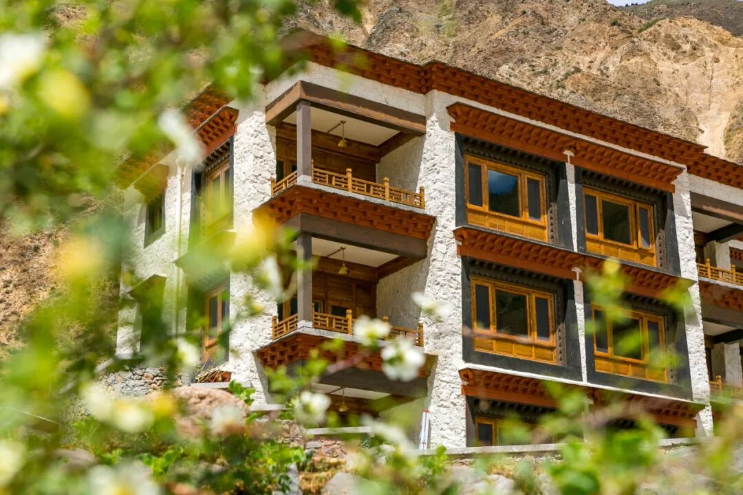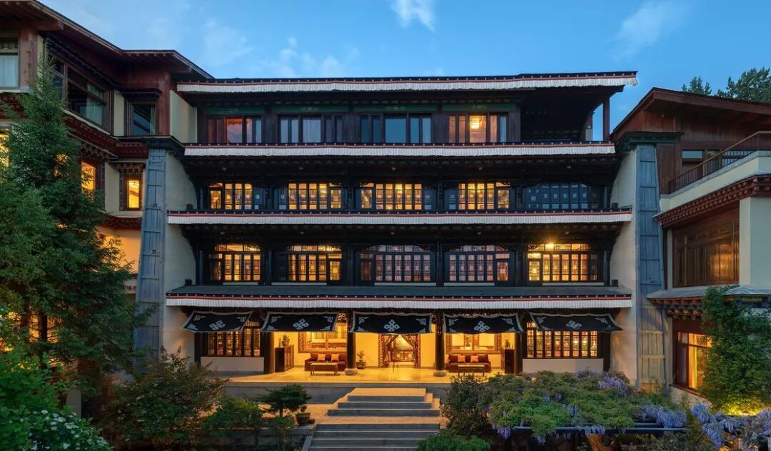 自然真实的尺度让人惊叹,梅里山居在宏大的外部环境下也被衬托出了的内在的韵味。内与外的呼应不仅超脱,也有惬意和一种在家的踏实和舒适感,这正是松赞一直在做的。对于松赞茨中山居,白玛多吉也坦言这是一个会挑战客人的地方。首先它并不出名,路途上又遥远,从塔城出发,3小时车程后,才能抵达背倚碧罗雪山、前俯澜沧江的茨中。但在白玛多吉眼中,这里有着无可替代的特色,是澜沧江峡谷自然风光精华所在。同时,它也是一个需要时间来慢慢的沉淀,才会感受到魅力的地方。一百多年前,法国传教士们冒险翻越群山到达云南北部,再把这里作为深入是藏传佛教中心区域的门户。一个世纪过去了,村里的藏传佛教徒和天主教徒和谐相处,白塔和教堂的钟楼遥遥相望。这里也依旧是百年前宁静祥和的模样,不曾被外界的纷纷扰扰所打扰。法国传教士当年还把"玫瑰蜜"的葡萄种子带到了这里,也就形成了家家户户都种植葡萄的传统。如今,“玫瑰蜜”在法国早已绝迹,却以其适应力及与产区的匹配度在这个小山村中保留了下来。能在澜沧江和怒江分水岭上的这个小村子里品尝当地美食和家酿葡萄酒,探寻秘境南极洛,来一次村庄骑行与峡谷野餐,确实是无处可以替代的经历。松赞丽江林卡是松赞滇藏线的起点,也是为了让客人在一个航段就能抵达松赞而建的。虽然能算得上是松赞系列中比较“入世”的酒店,但在选址上还是尽力避开了热闹的古城和束河,选择了还能依稀看到纳西传统生活方式的村庄茨满。夹在纳西村庄和一片松坡林之间,北面是玉龙雪山的风景,南面是文笔峰的景观,依然保持松赞遗世独立的特色。为了融入这里,丽江林卡的建筑参照了汉唐官建形制,结合纳西传统院落,用这种语言表现了丽江地区不同文化融合的特性。坐在露台上,尽可以远眺整个丽江坝子。作为度假系列的林卡,精品店、咖啡厅、书吧、SPA、室外泳池,这些属于舒适生活的各种配置几乎都不缺。而走出这里,又是苍茫的群山,偶尔会路遇背着松针叶穿过树林的当地人。摆脱了多数人眼中那个花花绿绿的丽江,我们也多了一个视角感受这座小城原本的色彩。从2015年开始,白玛多吉布局的滇藏线一点点成型,与香格里拉环线一起,把云南和西藏的美景都纳入了专属的“松赞环线”。松赞也正式步入西藏,开启新的旅程。和松赞丽江林卡同年开业的,还有选址日光之城的松赞拉萨林卡。藏族建筑工艺传承得最好的是寺庙,所以在建造拉萨林卡时,松赞也借鉴了非常多当地寺庙的工艺。在视野上,10栋藏式建筑组成的“城堡”,从大堂、餐厅、书吧到每一个房间,都齐齐北望布达拉宫。酒店各处都安放着藏汉纺织艺术品,一件件仔细看来,就像游历了一所藏式风情博物馆。随后,2019年6月,松赞滇藏线贯通,松赞芒康如美山居与松赞然乌来古山居也开始正式营业。从德钦到芒康,从芒康到八宿,都是滇藏线上高差极大的路段,也是滇藏线上最艰难的路段。海拔2600米的河谷台地上矗立的松赞芒康如美山居,无论从心理还是生理上,都能给即将入藏的旅行者一种体贴的缓冲。主楼朝向澜沧江和远处碧绿的梯田。陇上麦田青青,澜沧江霎时温柔,人瞬间感觉柔和放松了下来。在这里,即使只是坐在窗边,望向天际,一边闲聊一边等待最后的一道余晖落幕,也不辜负在慵懒而缓慢的时间里感受这片奇异而富饶之地。面朝来古冰川,置身在雪山群、冰川和湖泊之间的来古山居则像是身处世外秘境一般。松赞为了减少“入侵感”,将整座酒店镶嵌在悬崖上。利用原始地形,将近一半的建筑藏于山体内部。与原始村落自由的体量、肌理达成了一种协调平衡的关系。酒店的建造过程也实属惊人,创造了史上海拔最高,施工难度最大的建筑奇迹。酒店整体由43个模块组成,启用23辆大型货车行驶3500公里,12天途径10余个省市,从上海运抵然乌,再由20多个国家、地区团队共同完成了这件作品。松赞也借此摘得了2019美国建筑大师奖世界遗产类项目最佳设计大奖。包括丹麦地暖以及24小时供氧系统等硬件设施和进门时迎上的一碗热气腾腾的姜茶,也保证了来客“身心皆在天堂”,不被滇藏线曾经传说中的艰苦所困。经过传统的藏村,前往高原湖泊朵松措,徒步走过河滩、山丘、冰原,面对雪山、圣湖,除了欣赏,还多了一份对自然的敬畏。每年林芝桃花节的重头戏就在大山大水之间的波密。在波密,眼前有的是河、滩、桃树、庄稼、连绵的远山和云雾,和阳光普照的诗意和暖融。白玛多吉也对这里偏爱有加,甚至把这里拿来和瑞士相比。波密林卡背靠郁郁葱葱的浓密雨林,左右被江水环抱。棕咖色小木屋,白窗明亮,错落分布在山坡上。