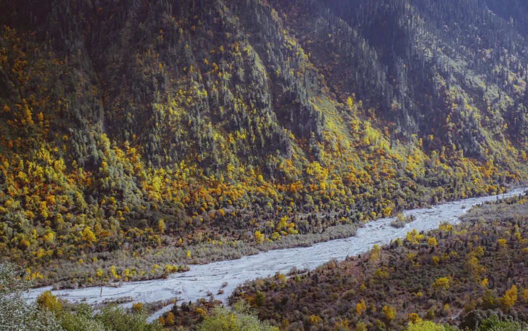 除了三月的桃花,十一月的波密秋林配上蓝绿色的河流和湖泊,也能让眼睛饱览醉人的山间泼墨彩画。