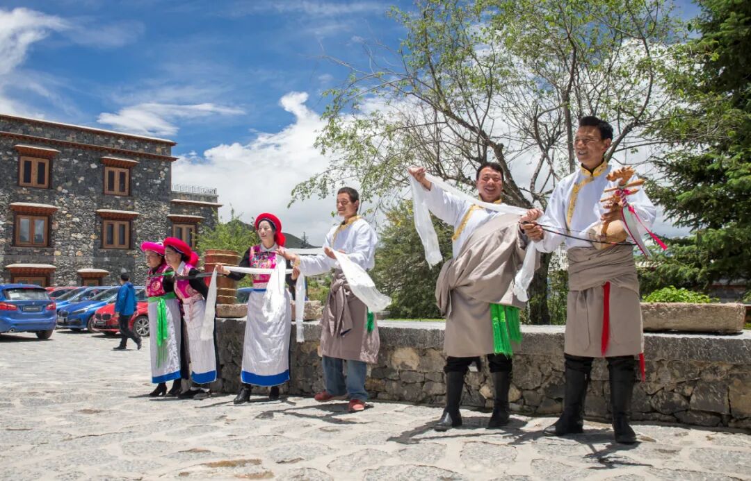 在香格里拉山谷里松赞林寺旁的克纳村中,有白玛多吉充满儿时记忆的老宅。这里被他重新设计改建,由当地最好的建筑工匠花了时间和心思修整。走进这家松赞绿谷,细节处能看到白玛多吉多年珍藏的藏式老家具、挂毯、铜器、佛像及唐卡等传统手工艺品。但这对于白玛多吉来说还远远不够。于是,从香格里拉开始,在几乎找不到太多游客的地方,他来来回回跑了很多趟之后,多了松赞打造出的另6个舒适的“家”。比起绿谷的小而美,在松赞林寺的后山下矗立的,是建筑群更壮观的松赞香格里拉林卡。“林卡”在松赞的系统中,是指规模比较大,客房更多的酒店。香格里拉林卡中24栋依山而建的石砌藏式碉房错落有致,厚实如原生在这里的城堡。73间客房,每一间几乎都能以最好的角度看到近400年历史的松赞林寺。无论信仰如何,难免在此情此景下一眼忘俗。而松赞林寺全年最隆重的宗教节日,藏历冬月的“格冬节”那一天,周边数万名藏族人都会聚集于此,在彩幛锦缦、香火缭绕之下,翘首以待庄严又欢快的密宗宗教仪式。传统藏式木门后的房间内,“纯手工”铺陈的一切痕迹让人目不暇接。除了专门订做的地毯,当地艺人制作的黑陶、各类四处收集而来的装饰品。松赞还养了几位自己的铜器手艺人,从房间的钥匙牌、水杯到洗脸台再到浴缸等等凿痕清晰的大小物件,都是几位匠人手工打造的。这种在地之“奢”,大概很难在别的地方感受到。这里的点滴也在时刻提醒住在这里的旅人,自己究竟身在何方。而白玛多吉的目光也从这里投向更远的,大山褶皱深处不知名的秘境中。2011年,松赞奔子栏、塔城、梅里三间山居同时开始正式对外营业。自此,松赞环线正式打通。2013年,松赞茨中山居也揭开了自己的面纱,对外示人。白玛多吉有心“放低门槛”,把除了梅里之外的几间山居安排在旅行目的地功能性强,但海拔较低的地方。他希望来客们在周边稍微轻松走动一下,就能体会和感受到这个区域内最有特征、最具特点的地方。松赞奔子栏山居位于金沙江边干热河谷地貌中一个小小的绿色山谷中。远离热闹的镇子,这里长着和人一样高的仙人掌,也不缺口感好的葡萄和夏日的西瓜,以及秋天的橘子。从干热河谷满眼的荒芜到丰腴的绿,举步之间气候和植被的垂直变化给足了视觉和感受上的冲击力,让人会对这里莫名着迷。徒步至尼丁原始森林,会有一场林中溪水边的火锅野餐等待愿意花时间走入这里的人。当古朴动人的铃铛声响起时,茶马古道的历史扑面而来。这附近还有比松赞林寺更大的东竹林寺,很多藏族手工艺和歌舞文化在这里得到传承与传播。松赞塔城山居建在一片稻田之上。在想象的高原苍凉风景中,这里却是意外中的“江南”。