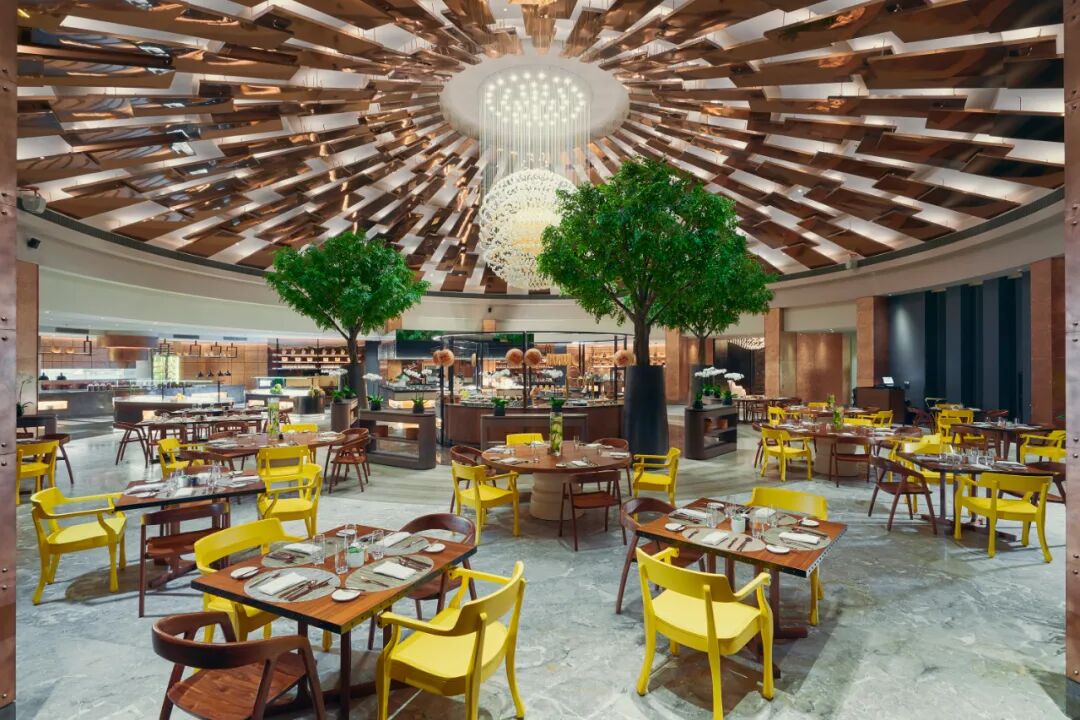 三亚嘉佩乐度假酒店设有四家别具一格的餐厅、酒吧和酒廊。其中,兰亭中餐厅是酒店的招牌餐厅,以传统的中式茶舍风格和红砖屋顶为特色,主理现代风味的粤式菜肴。茶作为海上丝绸之路的标志商品之一,也贯穿了这家餐厅的各类餐食主题。丝路餐厅以互动式美食体验为特色,菜单中融合了古代海上丝路沿线港口的特产、香料、文化和传统等元素,将三亚、新加坡、泰国、印度、中东和地中海等味觉体验都融入其中。三亚嘉佩乐的客厅和酒吧更像是一处私属会客厅。酒吧同样是从海上丝路沿线的香料、草药、茶和烹饪食材汲取灵感,供应别具风情的精致小食和鸡尾酒。会客厅的书架上摆满了历史书籍,供住店客人探索三亚、香料之路和茶文化的历史往事。