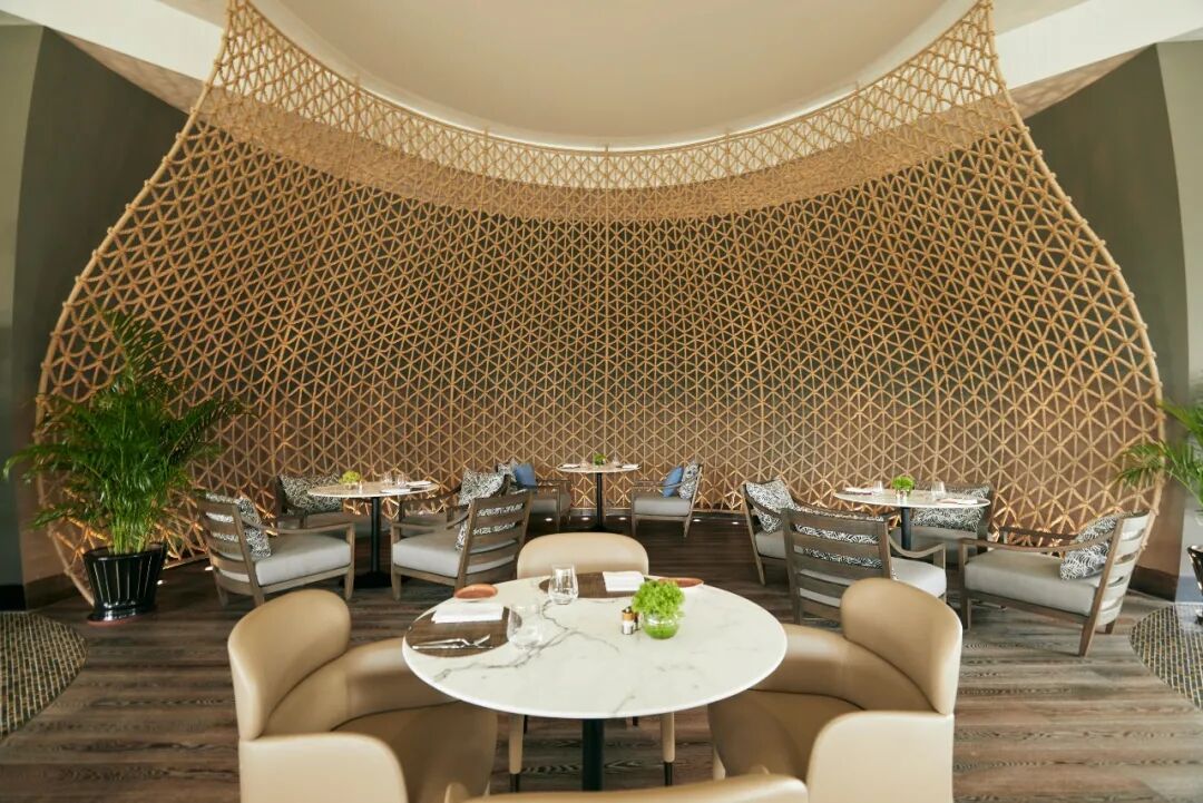 与泳池和沙滩为邻的The Dempsey池畔餐厅则洋溢着现代海滨格调,并以旅行手工艺品装点其间,供应亚洲、欧洲各地的美食美酒。