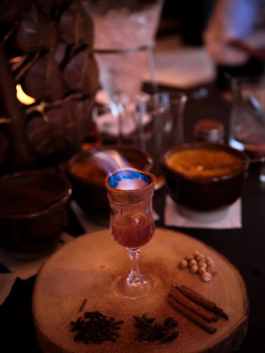 当夕阳渐沉南海,所有住店宾客都将被邀请至客厅及酒吧,参加入夜仪式,开始一段航海之旅,体验古代海上丝绸之路的迷人历史。调酒师根据沿途的风土人情和饮食文化,特别设计了12款香料混合的特色鸡尾酒。酒单则被设计成船长日志,颇有一番复古情调。