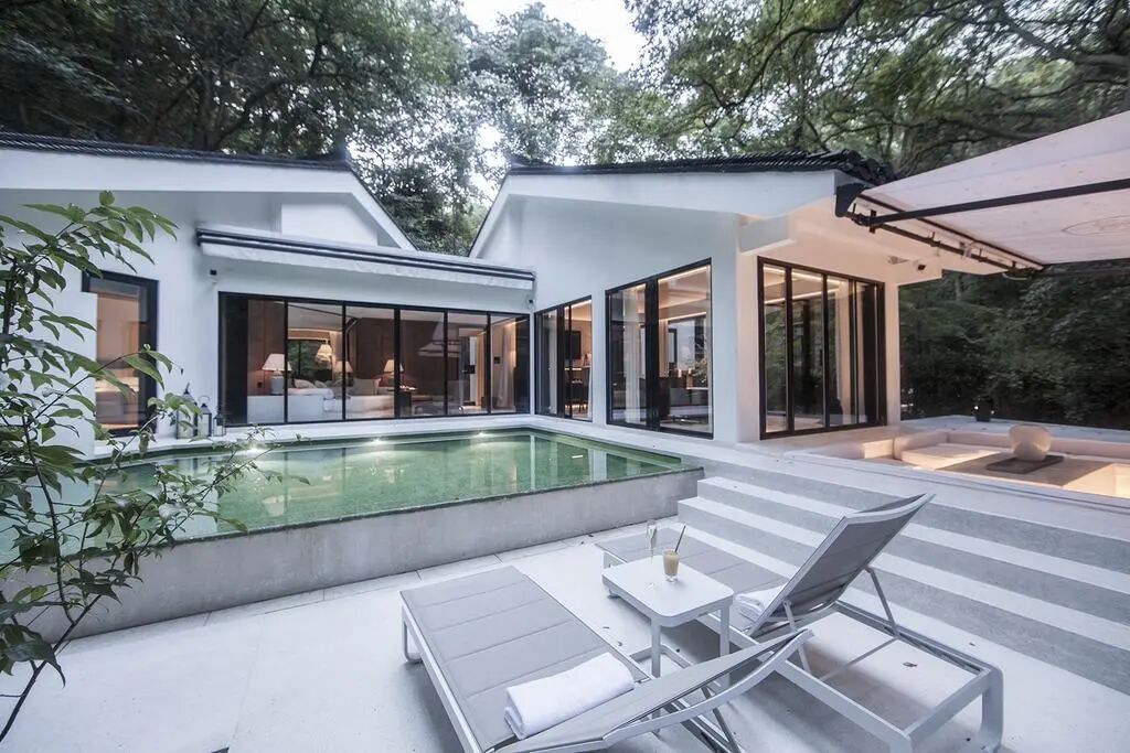每日清晨,管家都会从虎跑泉收集新鲜泉水放在庭院内,同时准备好一整套泡茶的工具。烧上一壶泉水,泡一壶新鲜的龙井与桂花,面对眼前美妙的庭院与山林,抿上一口,实在是太惬意。