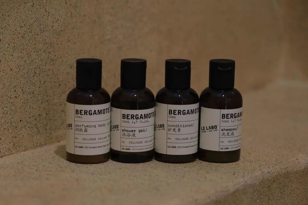浴袍和房间的极简风不同,自带夏日风情,备品是柏悦粉丝们最爱的Le Labo 22号。