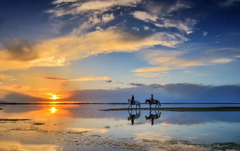 夏天的青海湖凉爽广阔,冬季的青海湖银装素裹,但一年四季不变的,是青海湖的纯净。纯净的天空没有杂质,青色的湖水仿佛能与蓝天相接,整个世界一尘不染。这片湛蓝如天镜的湖面上,分不清哪是天哪是。骑行是游览青海湖的绝妙方式,青海湖环形路况很好,如果有兴趣可以租上自行车,体验一把湖边骑行的乐趣。湖水周围是茫茫草原。湖滨地势开阔平坦,水源充足,气候比较温和,是水草丰美的天然牧场。每年千万只候鸟在此构筑了栖息的港湾。不仅能在这里感觉到野生动物蓬勃的生命力,更能被纯洁的大自然所震撼。
