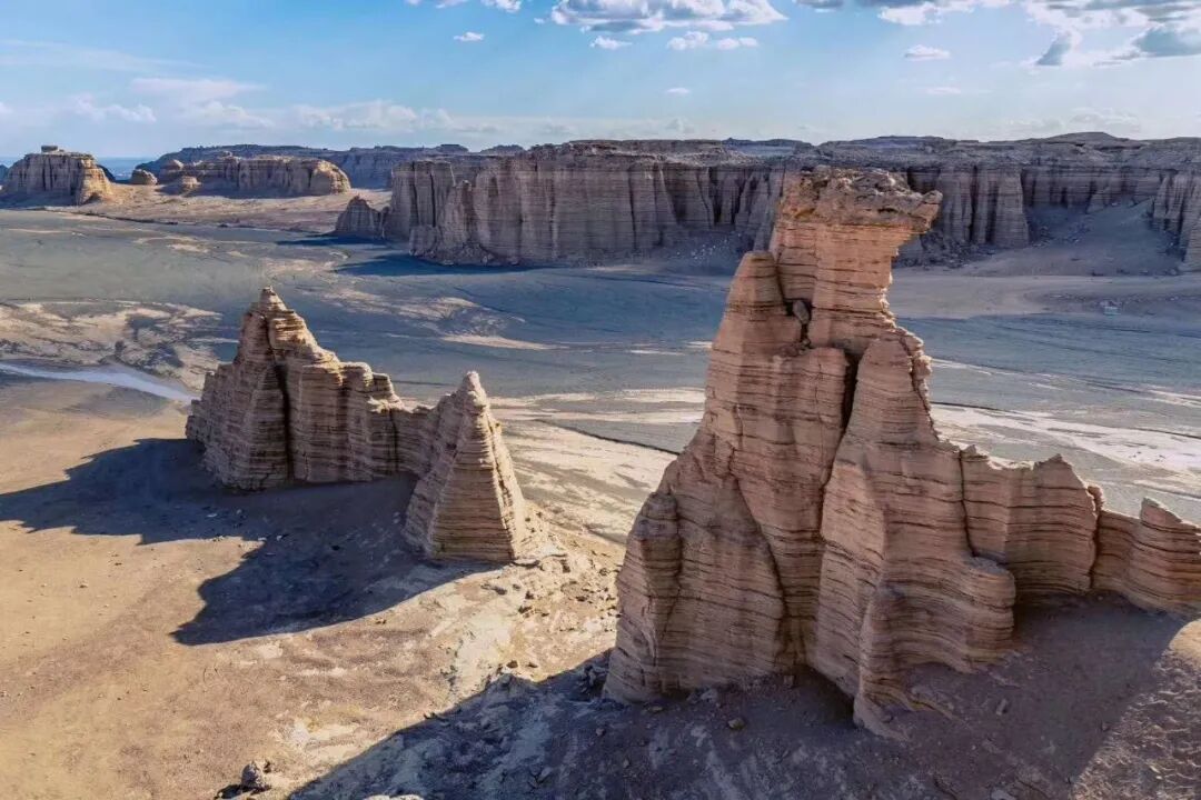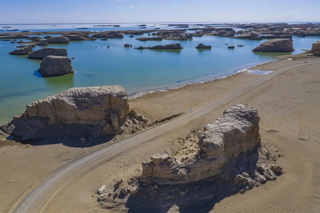 几乎花了一天的时间驱车到了水上雅丹,但真正到达后却发现路上所有的等待都是值得的。前几天看到的地上雅丹“魔鬼城”荒凉孤寂,而这片水上雅丹则魔幻而超现实。