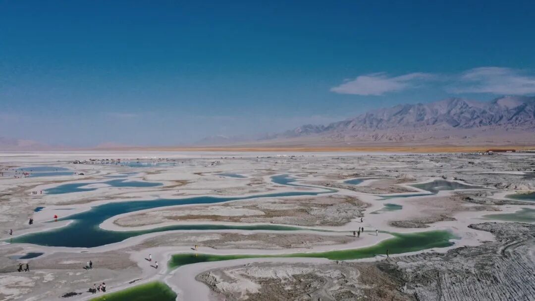 约6平方公里的“翡翠湖”原名为大柴旦湖,是原大柴旦化工厂盐湖采矿队的采矿区,经多年开采形成采坑,变成了如今美丽的“翡翠湖”。这片大小不等、形态迥异、深浅不一的盐池里蓄着的高浓度盐水在当地称之为“卤水”。因为丰富的含盐量天然形成的鲜艳的颜色。湖泊与湖泊中间几乎都有一条宽阔的公路连接,可以沿着湖岸边走边停,尽情地欣赏美景。平地视觉效果已然缤纷震撼,但当无人机飞起来后, 才是真的人间绝色。有条件的话,真的建议用“上帝视角”来观赏一次翡翠湖。