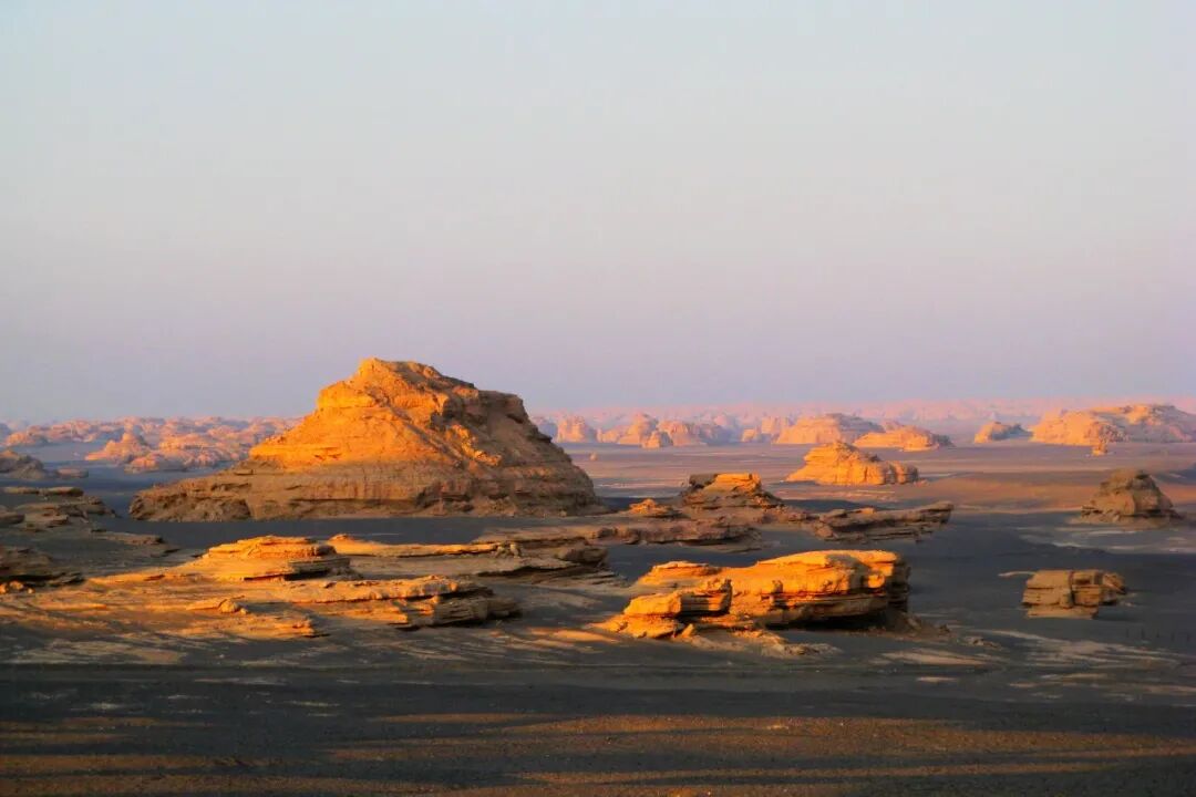 雅丹地貌是干旱地区的一种风蚀地貌,风力虽然磨损着砂石,但却也是天地间唯一与之相伴的东西。而随着时间的变化,外力的侵蚀会让低洼的面积不断扩大,山丘面积越来越小,而与地面的高度差也在不断降低,最后彻底在地面消失。被风力塑造,最终又消失在风中,魔鬼城无论是名称还是早注定好的宿命,都令人不忍唏嘘。刚进景区时,以为越野车已经完全没有了正失落,司机师傅却突然说可以勉强再带我们一轮。于是就看到了魔鬼城里的日落,几小时前的失落当然是一扫而光。由于鸣沙山的人太多,于是和同行的小伙伴很快达成了一致:乘坐越野车前往沙漠的深处。
