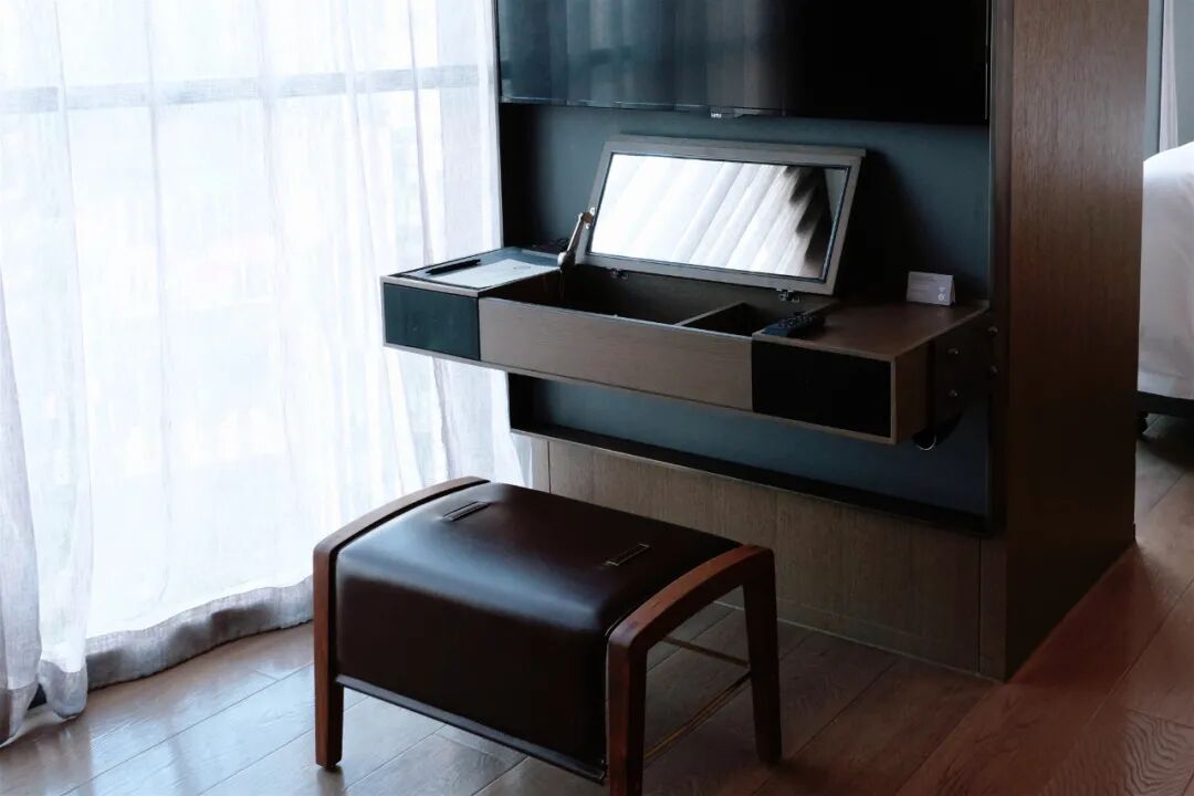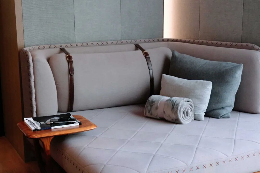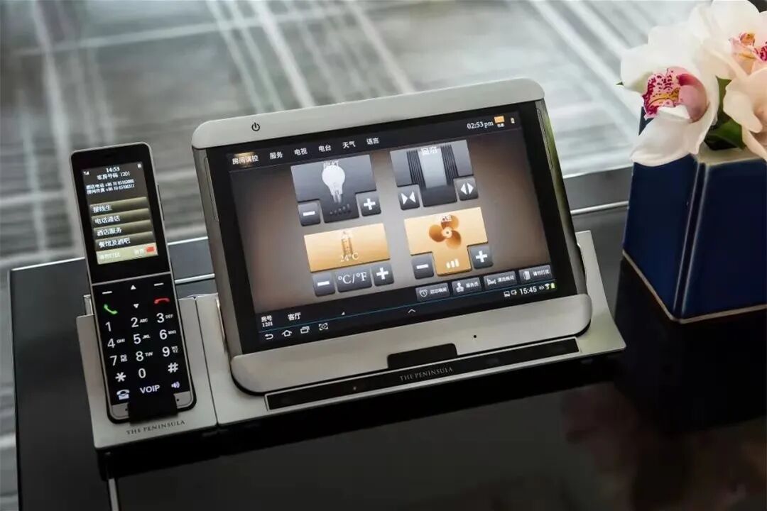 所有套房内都设有独立卧室、客厅、浴室和衣帽间,细节之处完全以家庭功能需求配置。客厅内办公桌上集成了大量办公设备,拉开抽屉更是一整套办公用品跃然眼前;办公桌下方还配有打印、复印、扫描一体机。寻常酒店独立商务空间的配置,在半岛直接搬进了每个房间之中。每一个套间有隐藏“收件箱”,通过智能联系统员工就可以开启清洁服务。全程无接触,直接完成取送衣物、报纸、擦鞋等服务内容。卧室里是令人赏心悦目的亚麻色系,简洁却雅致大气。床头就是半岛酒店引以为傲的“黑科技”控制面板。还有集成客房所有控制系统的黑科技面板,指尖轻触便能掌控房间,甚至还能查询北京的景点交通信息。房间内的所有设置都是由时间和住客挑选出的最佳考量。
