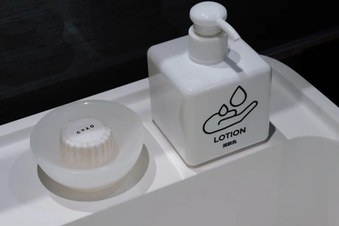 酒店的视觉设计出自《Monocle》主编 Tyler Brûlé的创意公司Wincreative,房间内的细节处洋溢着灵气十足,有趣又可爱的小细节。房间里的备品都配有特别可爱的logo图案,一看便知盒内装的是什么,虽然很不起眼,却提供了格外安心的居住感受。但CHAO真正惊喜的部分还是需要走出房间才能体验,整个酒店就像是一个巨大的创意共享空间,大量的工业风空间使得它成为京城最受奢侈品牌欢迎的活动场地,且可变性极强。大堂的休息处实际是一处library,有众多艺术、设计、建筑类杂志和书籍。酒店同时拥有大量的艺术藏品,且永远有不落幕的艺术展览。最令人惊艳的空间,是大堂阶梯通向的日光礼堂。通透的设计让阳光可以肆意洒落进来,两侧墙壁灯光则化繁为简,为墙面点缀些许发光的浪漫感。CHAO除了拥有传统酒店的功能之外,真的不太像是我们所认为的“酒店”,而更像是一个多层次、多元化的空间。可住,可玩,可赏,酒店可以不只是一个休憩落脚的地方,也可以让居住其中的人流动穿梭起来,即使只是短暂的停留,也要将体验的精彩度最大化。