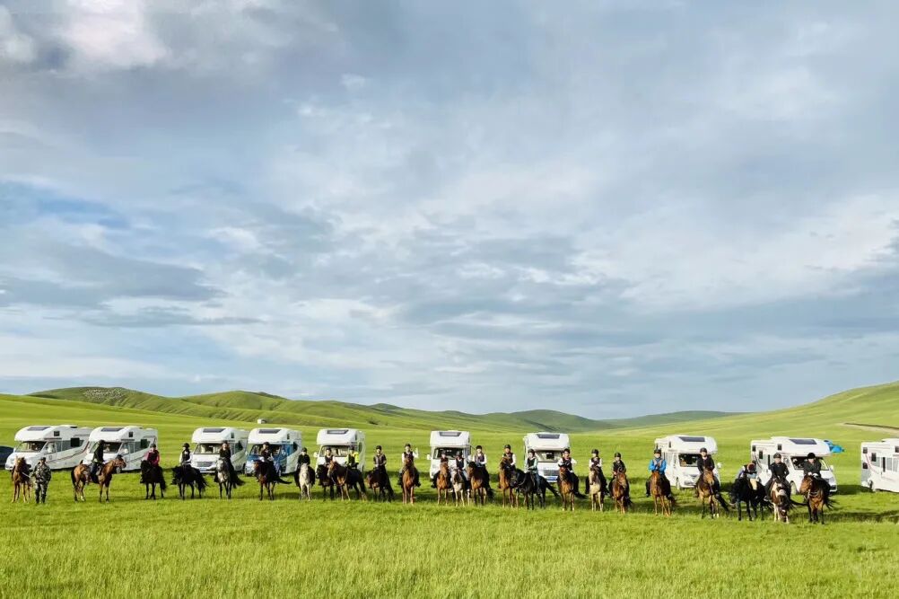 后勤保障车:一支由草原房车、随行越野车组成的车辆保障队,确保行程中的物资和热水供应。