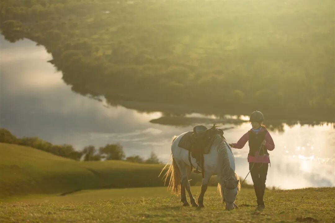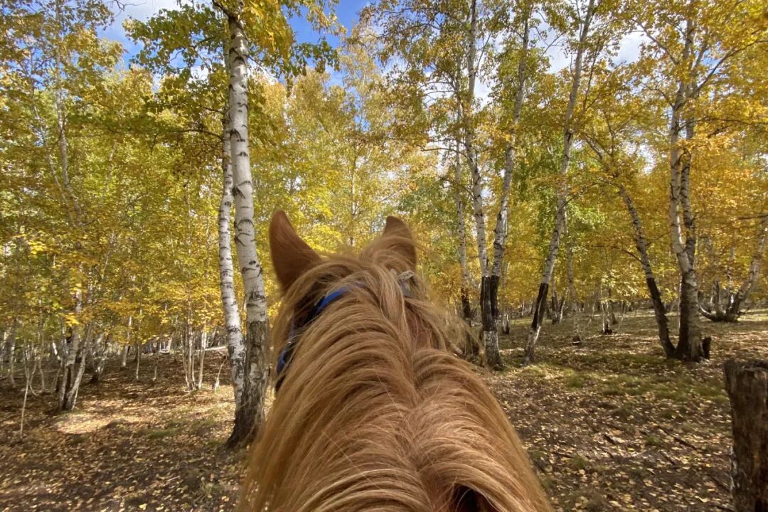 马术是古老的,它凝结着游牧文化最深的历史。但马术也是时尚的,因为现代马术的发展,让运动与优雅的姿态结合,行走时不紧不慢,仿佛一个悠然自得的当代大侠。但当马儿一旦奔跑起来,就好像张开了无形的双翅飞翔在空中。凉爽的风贴着连接呼啸,绿草模糊成一片碧色的海洋。马蹄声像鼓点,更像是敲打在心头上的巨浪。骑马跑过呼伦贝尔,才能理解草原人为什么格外敬畏天地。俯仰于天地之大,在这样的环境里生活久了,自然的美将慢慢浸透进入骨髓,塑造出豪情万丈的灵魂。额尔古纳河是呼伦贝尔上一道独特的风景。额尔古纳河地区以草原丘陵为主,骑马登上高坡,看蜿蜒静默的河流如何默默滋养出丰美的土地,还能眺望到不远处的俄罗斯岗哨。选一个清晨,将马儿喂饱后朝着白桦林出发。林中行走可以暂时放弃奔跑的速度,让马蹄慢慢踩在厚厚的落叶层,发出沙沙的声响。洁白的白桦树干围绕在四周,点点阳光斑驳的射进林中,此情此景就像是走入了童话里的森林。![]()