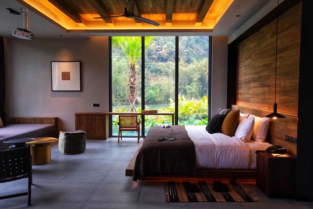 广西崇左丽世度假村位于中越边境小城崇左,度假村延续了丽世以自然真实诠释奢华的态度,50间套房及6间自带私密露台或泳池的别墅,从装饰到空间无不体现着“慢旅”的艺术。套房面积100㎡起,河畔别墅则非常适合家庭出游,除了拥有更宽敞的室内空间外,室外还设有清水甲板。无论是一场甲板上的一次私人BBQ,或是露台上惬意的下午茶,都是难得的沉浸时光。广西崇左秘境丽世度假村3天2晚预售套餐