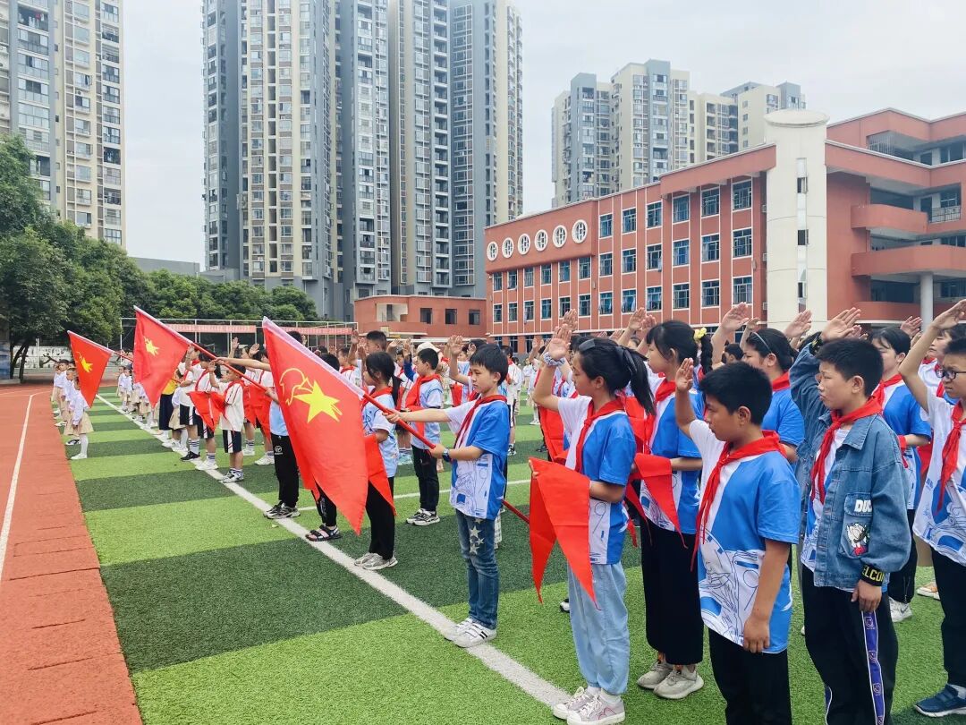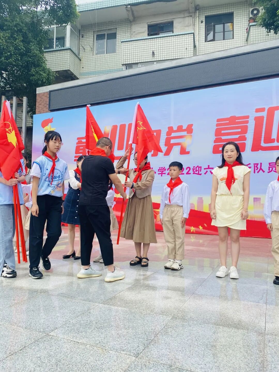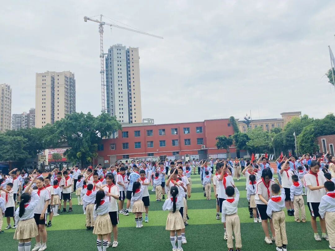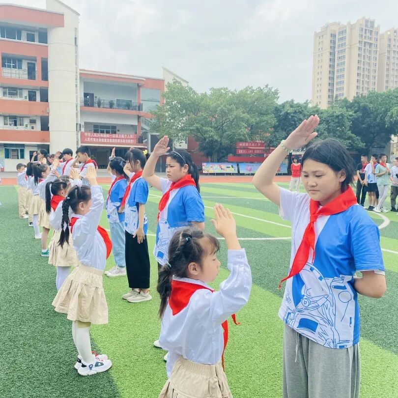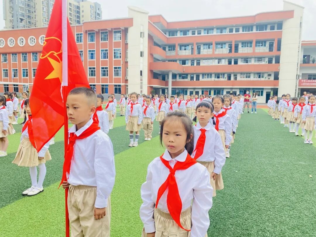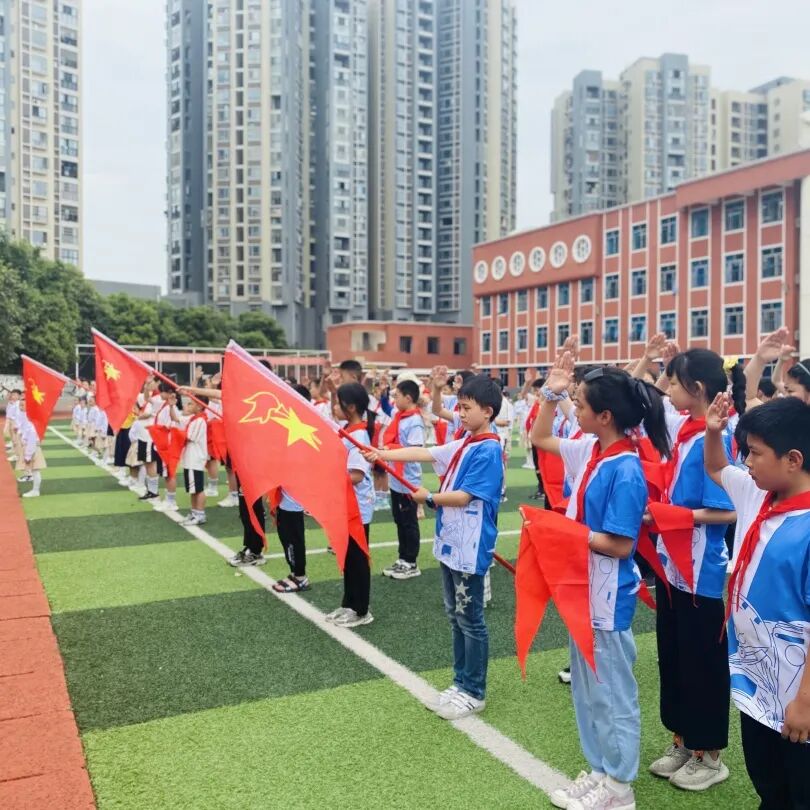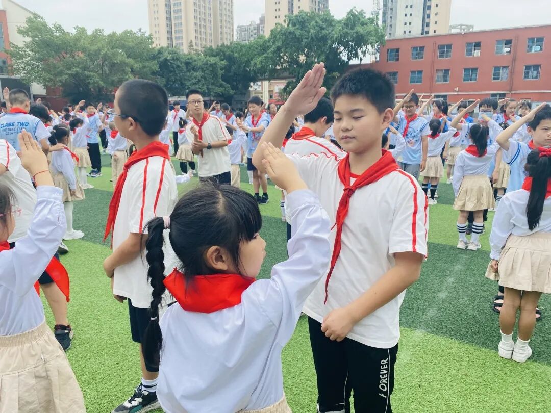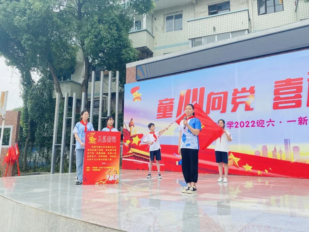 5月26日下午,在飘扬的五星红旗下,桂湖小学的孩子们队列整齐,意气昂扬。伴随着小主持一声“出旗”,桂湖小学“童心向党 喜迎二十大——2022年春迎六一新队员入队仪式”正式拉开了帷幕。在六一来临之际,孩子们用庄严的入队仪式向党的二十大献礼。
