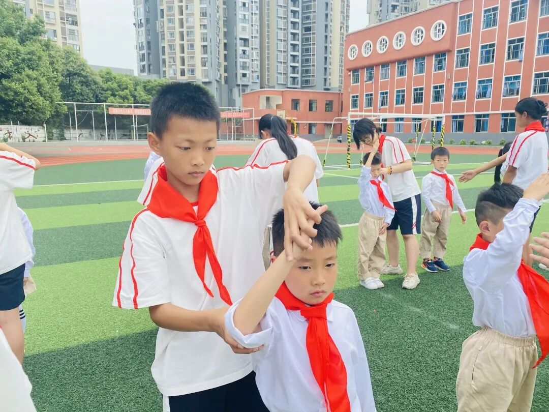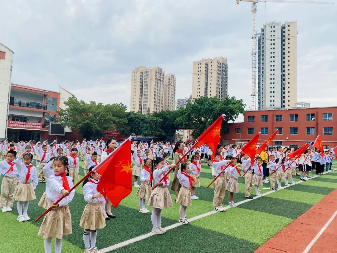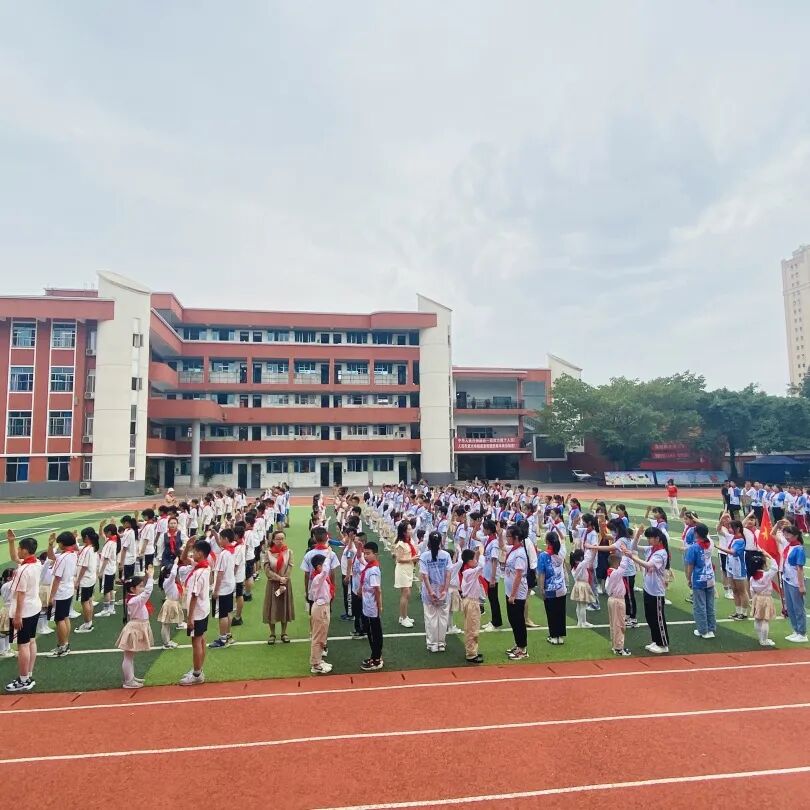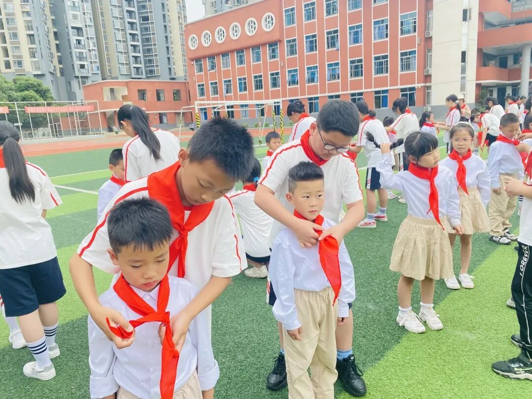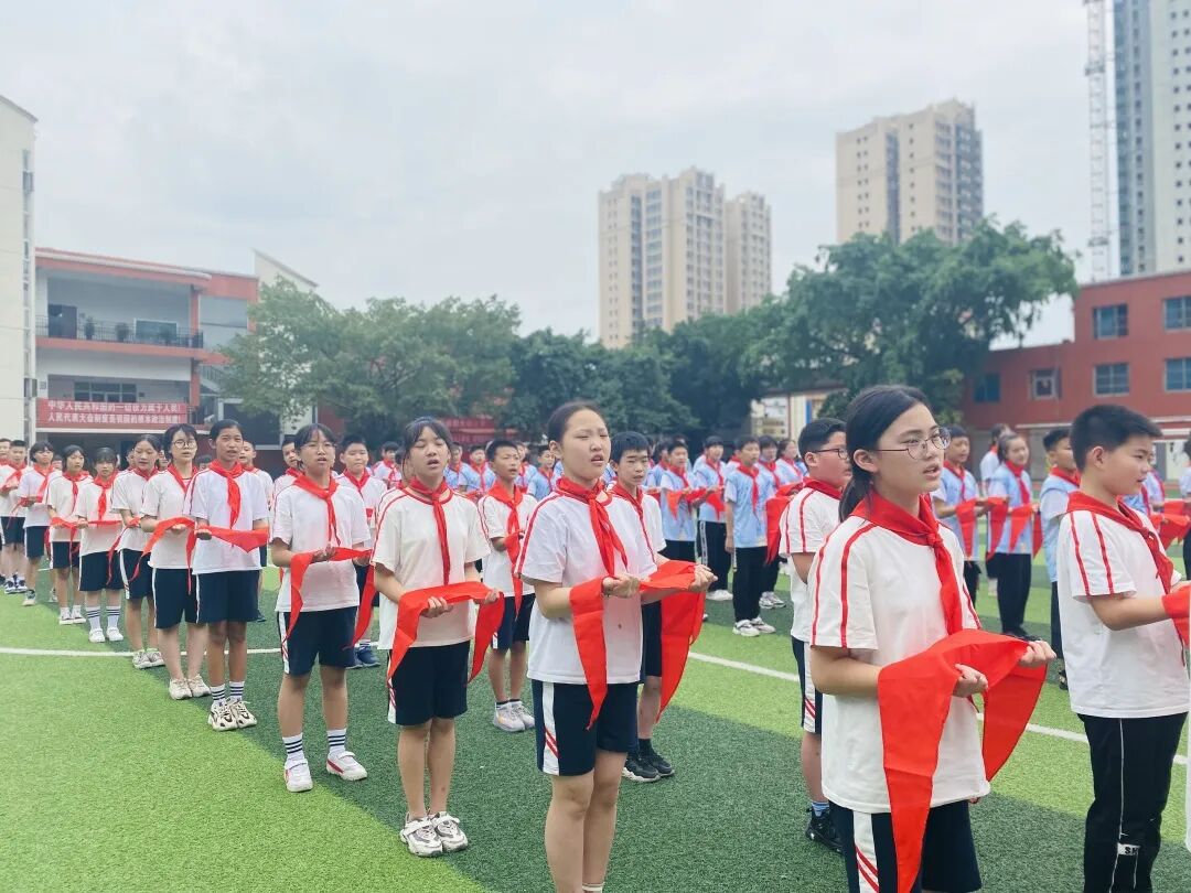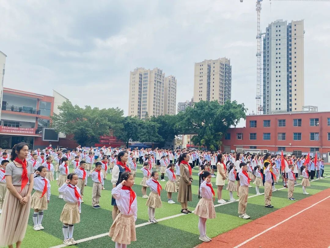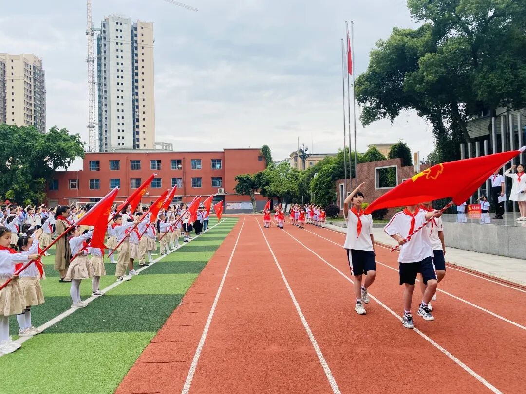 5月26日下午,在飘扬的五星红旗下,桂湖小学的孩子们队列整齐,意气昂扬。伴随着小主持一声“出旗”,桂湖小学“童心向党 喜迎二十大——2022年春迎六一新队员入队仪式”正式拉开了帷幕。在六一来临之际,孩子们用庄严的入队仪式向党的二十大献礼。