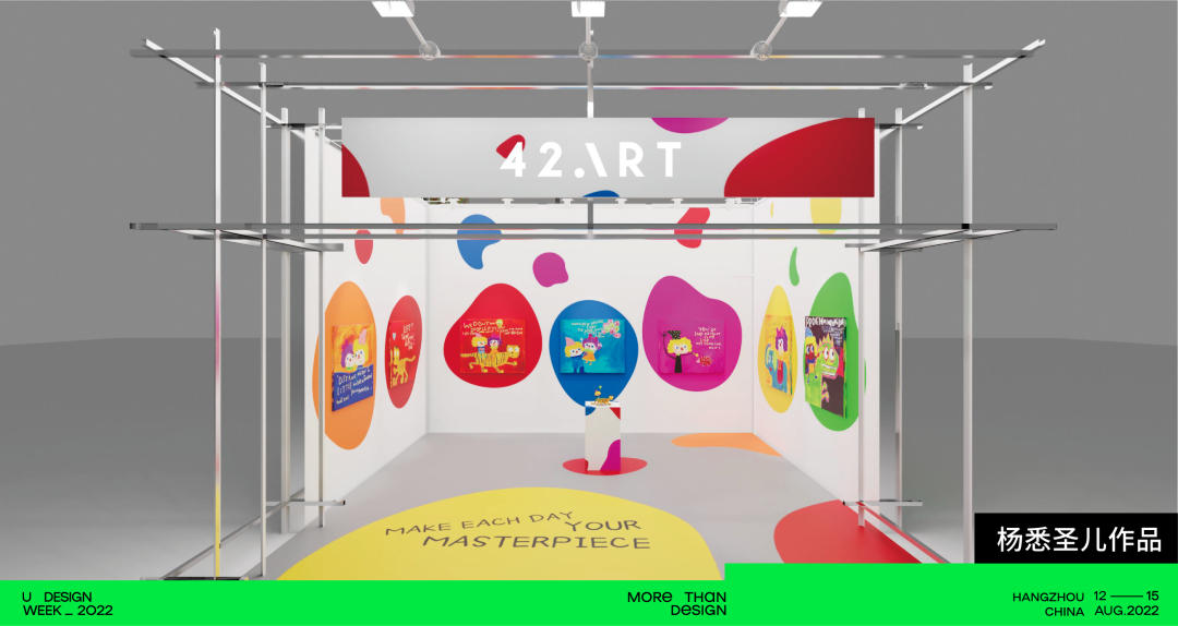 42 ART SPACE作为一家集艺术家原作、衍生品和时尚潮玩的展览销售平台,42 ART SPACE 始终关注全球新兴艺术力量,致力于为艺术新生代提供面向公众的交流与展示机会。这次将带来杨悉圣儿的作品 ,展位的设计理念是根据她作品中的艳丽张扬的色彩,把色彩提取出来表现在墙面上,和她的画结合在一起,展现了她勇敢鲜活的个性。
