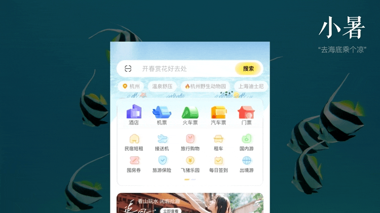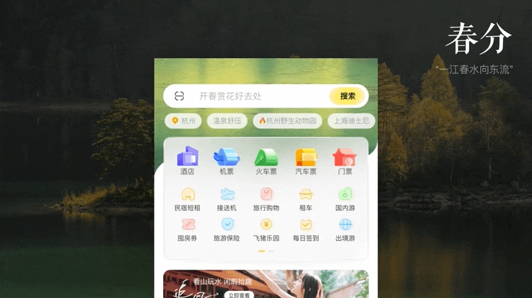 但今天我们所说的氛围可不是大促,而是将现实世界中的旅行画面呈现在首页。