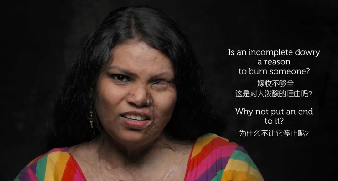 有个印度女人,睡觉时,丈夫突然对她泼了硫酸。她失去了半张脸,提起这事,她无比愤怒: