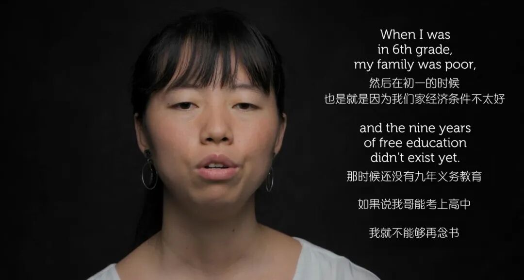 几秒钟后,她才继续说:因为14岁那年,我得到了第一份工作。那时,我为了我的家人,我的丈夫,我的学业,不得不去工作。